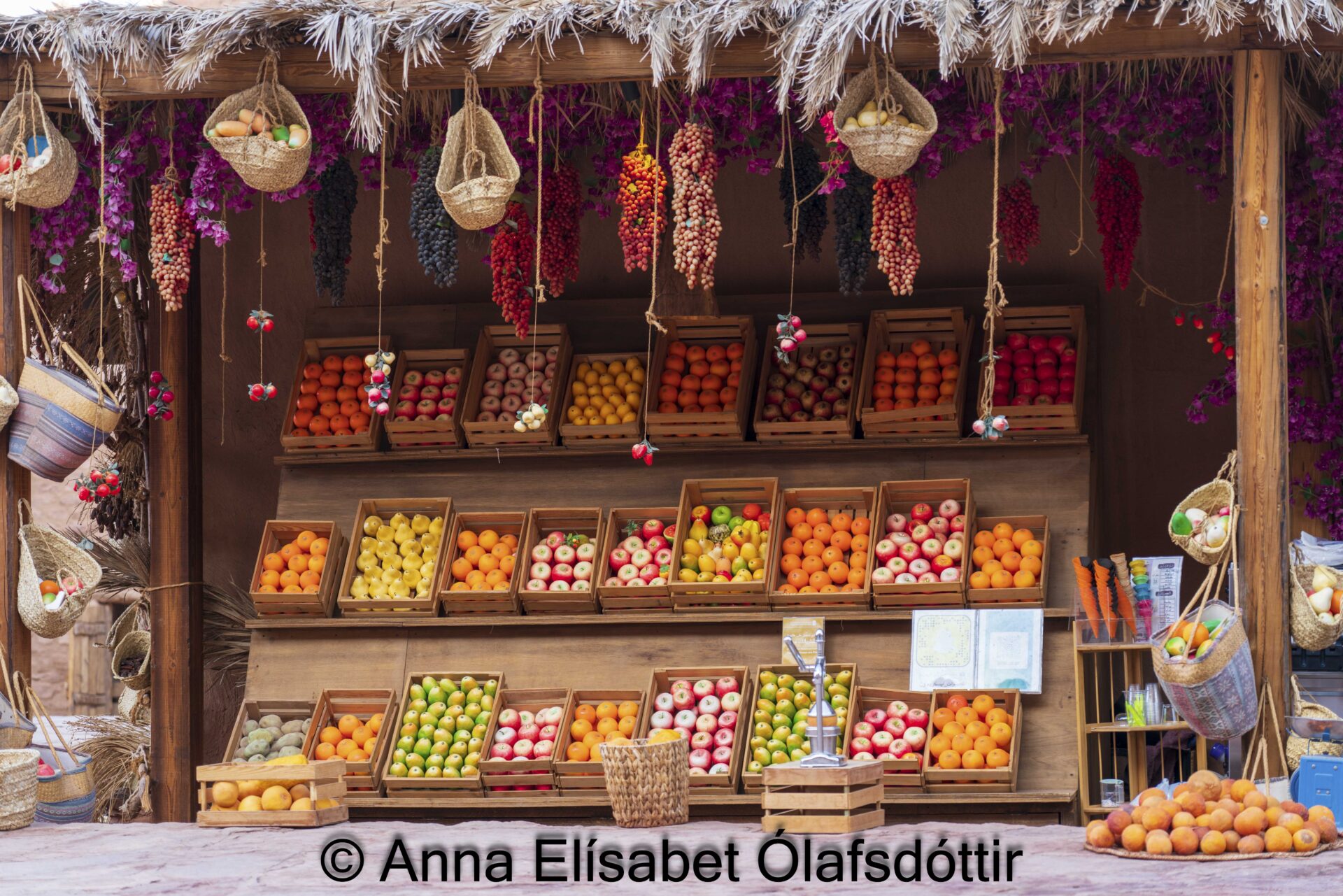Meira en nóg af girnilegum ávöxtum á markaðnum í Al Ula.