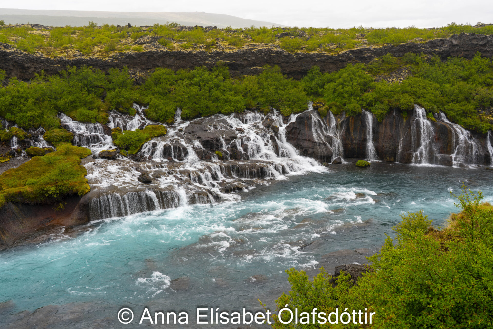 Vatnið streymir undan hrauninu í þessum fallega foss í Borgarfirði.