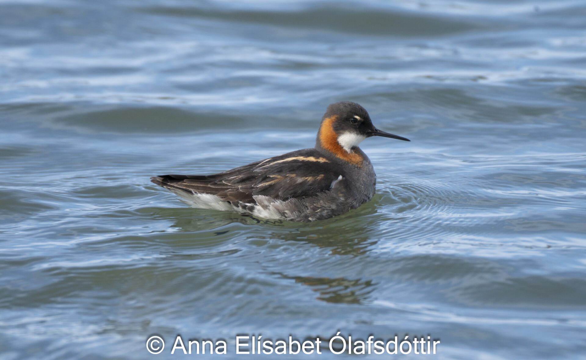 Óðinshani syndir um með sínum kviku hreyfingum. Sumar 2000.