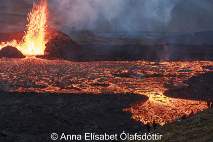 Hraun kraumar stöðugt í gíg eldfjallsins. Norður Tansaníu 2017.