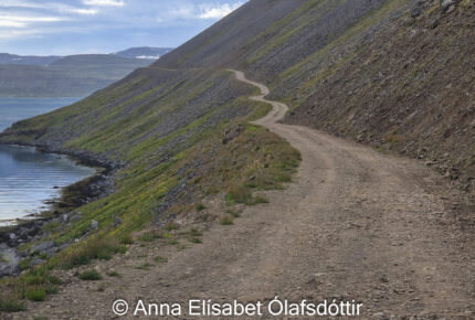 Mjóir vegir í snarbröttum hlíðum, Vestfirðir, Ísland